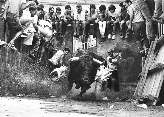 拉蒙·萨瓦萨·拉莫斯(西班牙斗牛摄影家):斗牛本身就是一个谜团,在西班牙,人们会调侃说:“连那些母牛都不理解那些公牛是怎么回事。”从西班牙语的词汇中,足以看出斗牛文化已经融入西班牙人的血液。比如说:“这个人是一头公牛”,形容这个人很强壮;“抓住牛角”代表坚决地解决问题;“把世界装进斗牛士的帽子里”,形容笑对人生。早在19世纪初,就曾有议员提出取消斗牛表演,斗牛的存在第一次遭受威胁,导致反对者和支持者之间泾渭分明的主要原因是,许多人从情感上抵触公牛在表演中受到的痛苦,这一点也成为反对者与支持者在谈话中无法克服的障碍、无法驳斥的论据。但实际上一些动物学上的研究结果与人们的惯性思维相反,比如说马德里的兽医学院的研究表明,公牛在进行搏斗的时候,脑垂体会分泌一种类似胺多酚的物质,它会消除或降低公牛感受到的痛苦。由斗牛引发的争论已经不是一种简单的冲突或者矛盾了,而是由年轻人引起的一场“殊死搏斗”,他们将鲜血和某种不明确的情感联系在一起,还有一部分人不恰当地把斗牛与一些纵欲、无节制的狂欢活动联系在一起。这些因素对斗牛文化的发展产生了负面影响。