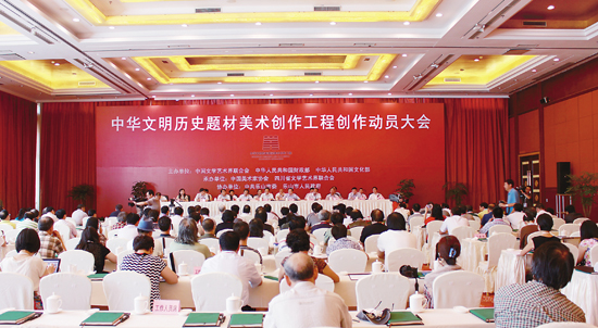在当天上午召开的动员大会上,翟卫华代表中宣部传达了中共中央政治局委员、中央书记处书记、中宣部部长刘云山的重要批示,对创作申报工作进行动员,对工程的实施作出全面部署。他指出,美术创作工程是国家级重大文化工程,各相关单位要进一步落实云山同志提出的要求;要艺术地再现中华文明史,把“工程”打造成为中华文明的传播工程;要动员全国第一流的美术家积极参与,把“工程”打造成为中国美术的精品工程;要高度重视、齐心协力,把“工程”打造成为国家级的重大文化示范工程。(讲话全文见本版)