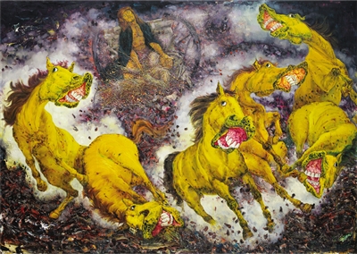 何延续的追问。图为布面油画作品《救赎的马车》。主办方供图