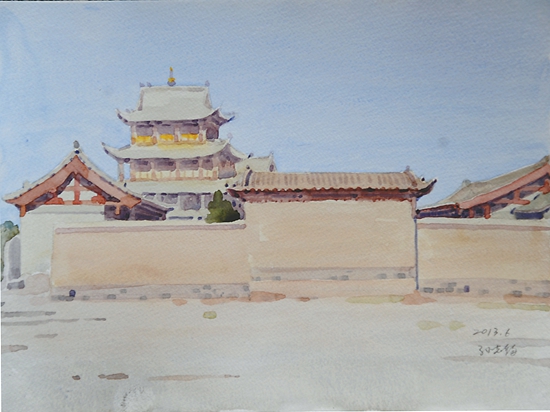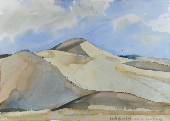 近日,中国文联、中国美协组织采风团,赴甘肃河西走廊举行“追寻中国梦——美术家写生创作基层行”活动。刘大为、马新林、孙志钧、骆献跃、王界山、忻东旺、康蕾等来自全国各地,涵括中国画、油画、版画、水彩粉画等多个画种的美术家,经过武威、张掖、嘉峪关,直至敦煌,行程1200多公里。在绵亘千里的丝绸之路上,他们遍览黄河、草场、雪山、戈壁、荒漠等变幻多彩的自然景观,体验裕固族、哈萨克族的风土人情,描绘肃南的丹霞地貌奇观,登临万里长城西端险要关隘嘉峪关,观赏魏晋壁画墓,流连并震撼于敦煌莫高窟的绝美壁画和雕塑。本版择其部分美术家的写生作品,以飨读者。