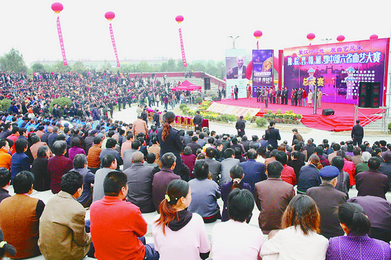 2006年10月,首届中部六省曲艺大赛在河南商丘开锣,从此成为中部六省曲艺人相互切磋交流的重要平台。图为商丘永城人山人海的大赛现场。