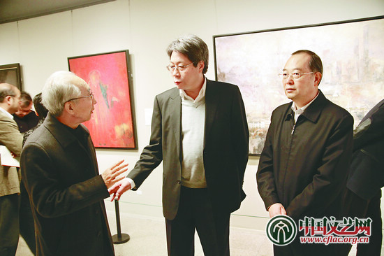 上海的美术家们来京办展,为我们吹来了一股清新不陈腐的海风,施大畏、韩硕、俞晓夫等的作品我们也都很熟悉。我觉得要做到两个深入:一要深入传统,二要深入现代。上海要多出一些如吴湖帆、贺天健、丰子恺这样的大艺术家,期望上海和北京的艺术家更多地开展交流,共同促进文化发展。