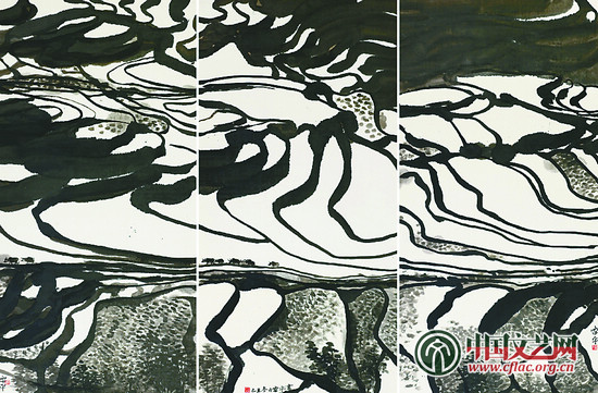 大写山田(中国画)136×68cm×3 张雷平