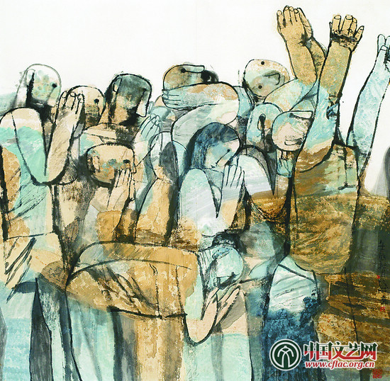 第二部分就是参展的102件作品,其中国画作品37件,油画38件,版画17件,雕塑10件。45岁以下的青年艺术家的作品有32件,占到了1/3的比例,可以说打破了过去大展的“门户之见”。作品包括名家名作、改革开放30多年来在全国美展及历届上海美术大展获奖的作品以及老中青三代美术家优秀作品。展览由三个篇章组成:一是扎根生活、服务人民,主要是反映上海艺术家深入现实生活创作的主题性作品;二是传承创新、熔铸经典;三是倡导多元、开放包容。这三个篇章既相对独立,又融为一体,可以说整体上反映了上海美术的创作状态和整体水平。