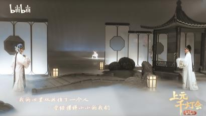 在传统戏曲片段外,戏腔歌曲也占据晚会的另一个重头,流行歌曲《小小》迎来全新的昆编版本,“上戏416女团”再度演绎代表作《探窗》,获得满屏“416”弹幕的排面。作为戏曲文化的衍生品,戏腔歌曲正在获得越来越多人的喜爱,日前发布的《bilibili年度国风数据报告》显示,近一年戏腔视频的播放量增速高达275%,其中《赤伶》成为B站年度点赞量最高的国风音乐。