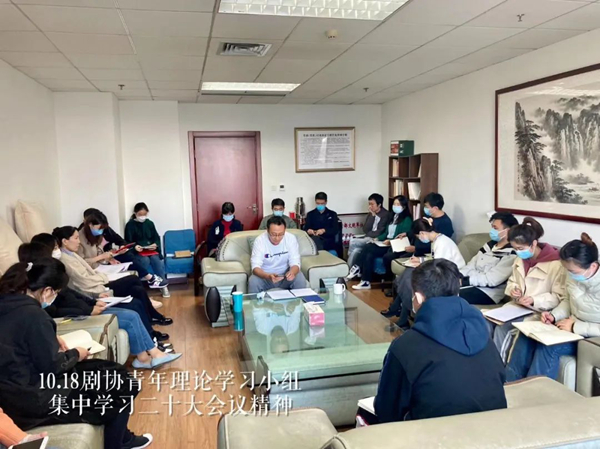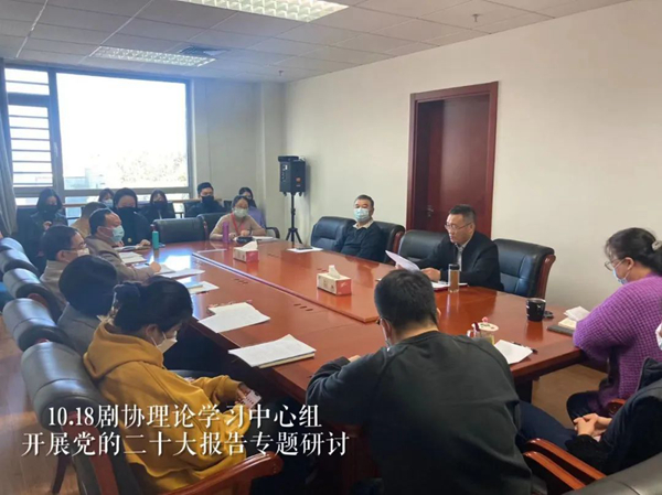 10月17、18日期间,剧协分别组织理论学习中心组、各支部、青年理论学习小组学习讨论。大家一致认为,习近平总书记所作的报告高屋建瓴、气势磅礴,承前启后、继往开来,全面阐述过去五年工作和新时代十年伟大变革,全面擘画了未来、描绘中华民族伟大复兴光辉前景,是推进马克思主义中国化时代化的光辉篇章。大家一致认为,报告鲜明提出“推进文化自信自强,铸就社会主义文化新辉煌”,体现了党中央对文化工作一如既往的高度重视,为我们的工作提供了指南。大家一致认为,要全面深入学习贯彻落实党的二十大精神,立足本职自信自强、守正创新、踔厉奋发、勇毅前行,在围绕中心、服务大局中彰显担当作为,在统一思想、凝聚力量中展现使命责任,更好地肩负起举旗帜、聚民心、育新人、兴文化、展形象的使命任务,为推动中国戏剧事业的繁荣发展贡献力量!