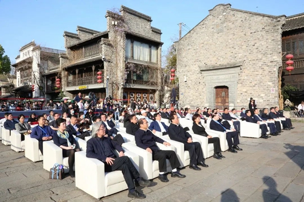 4月2日下午,首届全国小剧场戏剧“紫金杯”优秀剧目展演在江苏南京开幕。图为中国文联党组成员、副主席俞峰,江苏省委常委、宣传部部长张爱军一同启动展演。