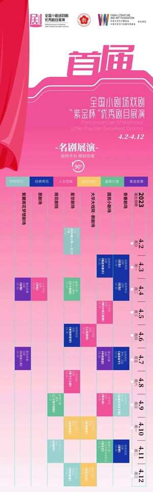 为深入学习宣传贯彻党的二十大精神,展示我国小剧场戏剧最新发展成果,搭建小剧场戏剧交流互鉴、融合发展平台,首届全国小剧场戏剧“紫金杯”优秀剧目展演于4月2日至12日在南京举行。