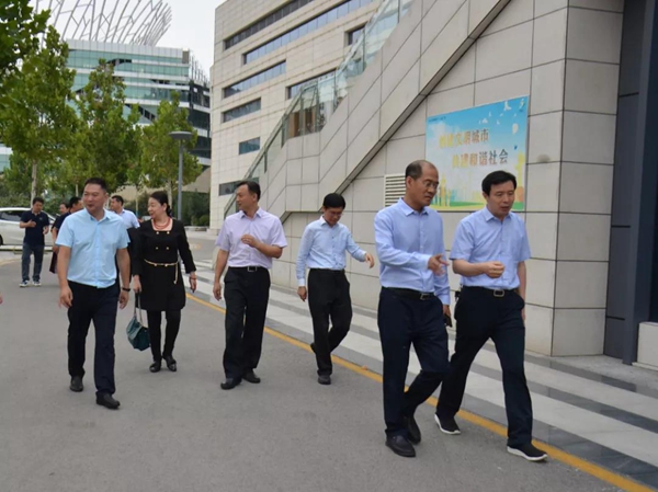 图为中国杂技家协会分党组书记、驻会副主席唐延海一行赴济宁市杂技城调研