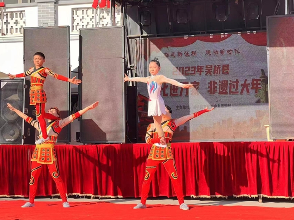 2023年1月13日至2月5期间,吴桥县举办2023年“文化进万家·非遗过大年”文艺演出活动。该活动由吴桥县文化广电和旅游局主办、吴桥杂技大世界协办,精选省市级非遗项目吴桥杂技节目,为当地百姓奉上了一台台精彩演出,让更多群众近距离体会到文化遗产的魅力,提升了人民群众对文化遗产保护的认识度和参与度。
