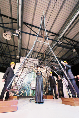 近日,模特伊琳娜·博尔什在乌克兰基辅“水晶天使”发型艺术节上展示高为7.7米的“埃菲尔铁塔”发型。 新华社/俄新