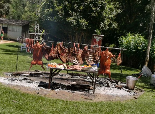 巴西人热情奔放,非常喜欢聚会,平时没事都要找机会聚,所以,生日聚会是非常受重视的。这天中午,弗拉维奥的家中汇聚了100多人。家人、朋友,加上我们十几个同事。因为院子大,竟一点儿也不显得拥挤。和每一个聚会的主题一样,大家不停地吃,聊,吃,聊。烤牛排、烤乳猪,各种甜点、蔬菜,各种做法呈现的当地特色主食——木薯,以及不停续杯的阿萨沙(Cachaca,甘蔗酒)、啤酒和各种饮料。