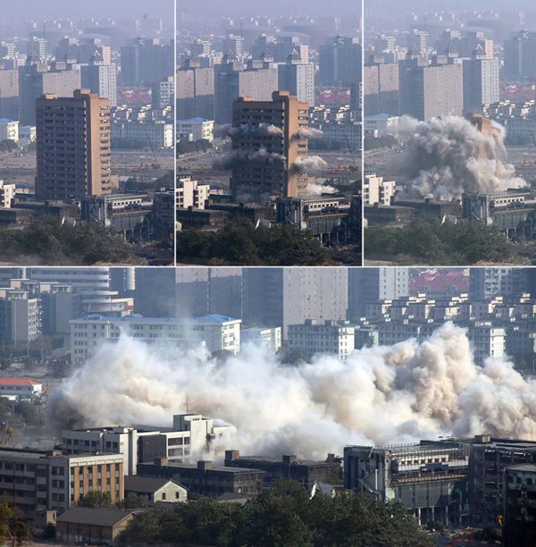 2006年11月8日,上海世博园区最高厂房楼——宝钢集团上钢三厂16层厂房主楼爆破成功。