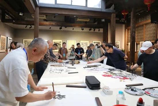 与此同时,两地四区书法名家齐聚福建省海峡民间艺术馆,开展“山海相约·闽上课堂”笔会交流活动。活动现场,书画家们挥毫泼墨,以“山海情”“闽宁缘”为创作主题,创作出数十幅书画佳作。创作过程中,两地艺术家交替执笔、互补墨韵,将西北的雄浑与东南的婉约巧妙凝于尺素之间。