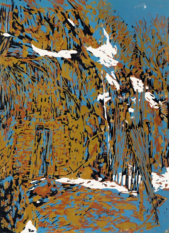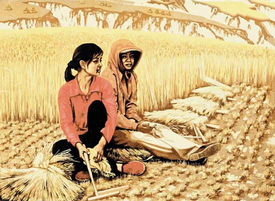 王维德《好联镰手》绝版套色木刻 90x80cm