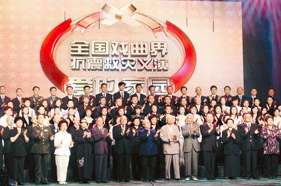 由北京市戏曲艺术发展基金会、中央电视台和长安大戏院共同主办的“爱的家园”——全国戏曲界抗震救灾义演5月29日晚在北京长安大戏院上演,来自京剧、评剧、昆曲、越剧、豫剧、川剧、河北梆子等全国各大剧种的名家纷纷向灾区人民献上一份爱心。