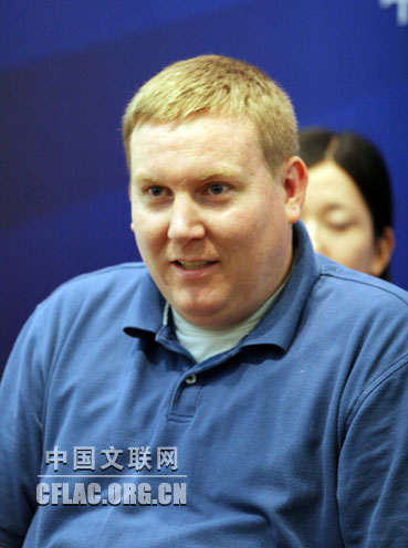 7月29日,2009年北京世界魔术大会举办期间第四次新闻发布会举行。图为著名魔术师瑞克回答记者提问。中国文联网 余宁摄影报道