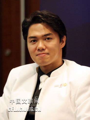 7月29日,2009年北京世界魔术大会举办期间第四次新闻发布会举行。图为著名魔术师埃尔南回答记者提问。中国文联网 余宁摄影报道
