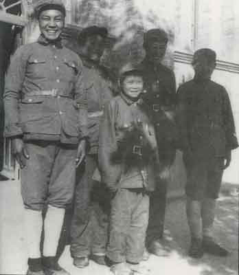参加红军的部分藏族战士到达陕北后的合影。左起:孟特尔、天宝、杨东生、扎喜旺徐、沙纳。
