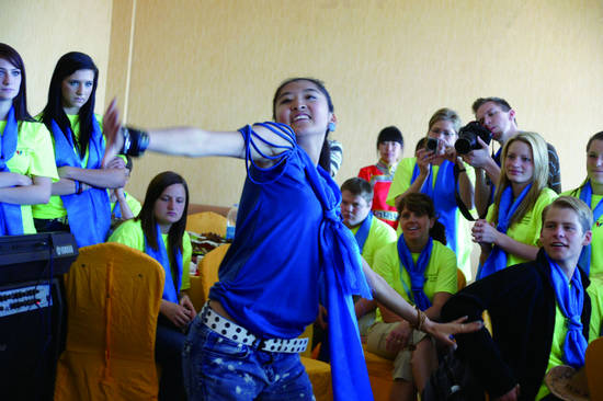 在辉腾锡勒,蒙古风情的即兴舞蹈吸引了美国青少年的目光/郑荣健 摄
