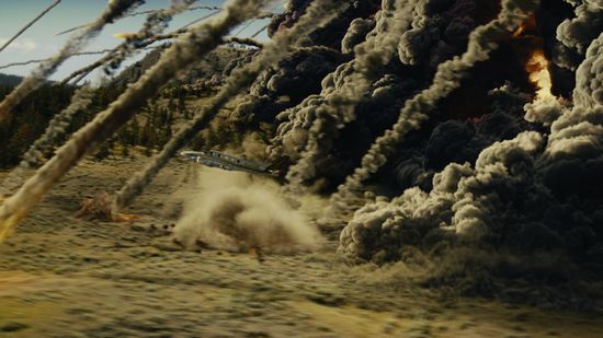 好莱坞大片渲染了灾难来临时的肆虐景象以及人类在面临灾难的恐慌。比如《后天》表现温室效应带来的全球气候剧变,灾难降临后纽约市迅速被冻结,冲天巨浪涌进曼哈顿,万吨巨轮被冲进楼宇之间,人们仓皇逃窜。自由女神像被淹没,被风雪困在图书馆里的人们只能靠烧书来取暖,都市作为人类文明的集中地被强大的自然灾害所征服。《龙卷风》中呈现房屋被席卷而起,油罐车被飓风随意吞吐、空气中奶牛、钢铁等废材料漫天飞舞等大自然威胁人类的恐怖景象。地震、地裂、海啸、洪水、飓风、岩浆是《2012》中世界末日中的视觉奇观。灾难片使人保持危机意识,认识到人在大自然面前的渺小,具有令人居安思危的警示意义。
