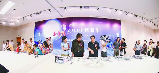 “Artists from the mainland, Taiwan, Hong Kong and Macau present a free great banquet of calligraphy and painting to Xiamen citizens.” A middle-aged man, who visited the painting and calligraphy exhibition entitled “2011 Love of China and Moon of Mid Autumn” at the main exhibition hall of Xiamen Art Gallery told the journalist while taking photos of those works he thought good with the digital camera.