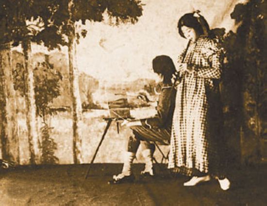 另一个是《画家与其妹》,李涛痕演画家,欧阳予倩演其妹妹。李涛痕在画画的时候,欧阳予倩站在他的后面吹一支玉屏箫。欧阳予倩说:“这个戏也是扮的西洋古装,涛痕在画画的时候,我站在他的后面吹一支玉屏箫,这也未免可笑,可是因为我会吹箫所以就在台上露一手,孝谷也不说什么,我就自由发挥一番。”