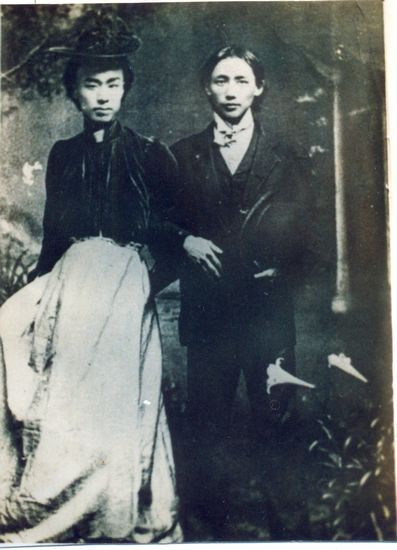 春柳社1907年在日本东京演出《茶花女》,李叔同饰茶花女(左)