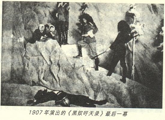 《黑奴吁天录》是中国人自己创作剧本并公开演出的第一个话剧,因此中国话剧研究史家便把这个戏的演出时间1907年定为中国话剧的诞生时间。