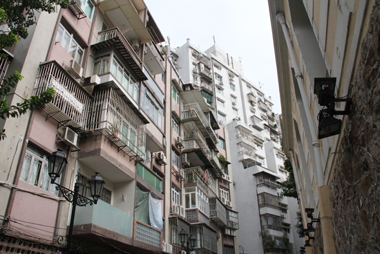 In recent years, big buildings have been constructed on a spectacular scale. Large entertainment facilities and super high-rise luxury apartment buildings are almost on a par in the Outside Port Zone and Off-Island Landfill Zone of Macau. Whereas the old city of Macau is deserted with few visitors, the urban tissue still remains, which seems to be the imprint of the remote past. Bustling crowds pack along the tourist route of World Heritage sites and snack stores burst with buyers. Visitors follow the track of their predecessors on a fixed tourist route in a hurry.