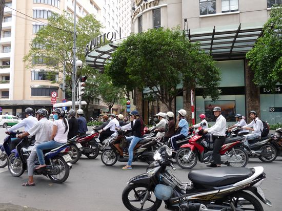 In Vietnam, it is said that there is the more beautiful landscape when traveling the more southward. In my opinion, there is the more noise actually. All the real motorcycle racers gather in Ho Chi Minh City. With speeding, racing and going against traffic, they fill the road or play drifting in some outlandish venues such as Red Church, Old Post Office, Penang Market, and Liberty Street. Sometimes, like jugglers, they will play some breathtaking tricks, one hand picking bags and the other driving, a 5-people family pinched in a racing motor, or holding a baby while driving, all of which are as amazing and thrilling as in Hollywood films. When we see over 100 motors waiting behind red lights and rushing to the opposite road like horse racing, we can’t help gasping in fright while the local brides, getting used to this, raise their wedding gown in a graceful manner and take photos in front of the Red Church in and out of the racing motors. This is just the motor culture in Vietnam, probably the living hormone of Vietnam.