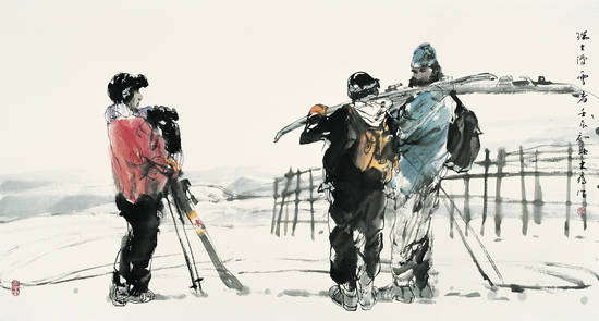 This year is the 62th anniversary of China-Switzerland diplomatic relation establishment, and friendship has lasted persistently for more than half a century. Alps Ink and Brush Foundation of Switzerland is active in promoting in-depth exchange between art circles of the two countries. At its invitation in April, Chinese artists delegation headed by Qin Zhigang and Liu Dawei paid a visit to Alps Swiss region for art exchange and on location sketch experience. Generally speaking, all the participant artists resorted to soft brush, ink and paper to present European expressions in heavy snow, forest, hill and ancient castle with their utmost enthusiasm. Though their painting styles vary, they all demonstrated the very Chinese paintings’ spiritual essence and formality inherited from tradition in their works. Their fresh vision with elegance interest provides a unique aesthetic experience, which is not only the artists’ hearty expression in a foreign country, but also profound reflection and active practice over the difference and integration of Eastern and Western art ideas.