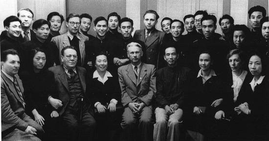 1949年,中国青年代表团在莫斯科与著名作家法捷耶夫和马尔夏克会见