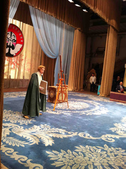 于是,格发想到扮演莎士比亚笔下的老翁、以外国人的视角来解读剧中人物的创意。不过,当他提出这个想法后,主办方并不同意,认为破坏了京剧传统的路子。倔强的格发说:“要么清唱,要么这样唱,否则就不演了。”双方僵持不下,最终通过沟通认为先试演下看看观众的反应再做决定。随后,格发去天津人艺找服装。“找了好多都不合适,这时正好碰到老演员李启厚,他说‘我帮你找’,老头儿人真好!”采访中,操着一口流利中文的格发愈发直率。由于有了这位演艺界专家的帮忙,大家对格发表演的认可度提高了不少,都说“李老师的眼光错不了”。