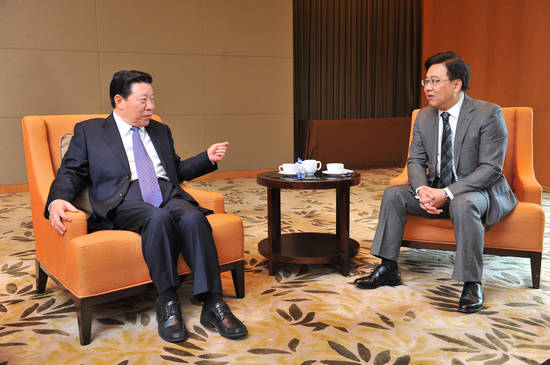 中国文联荣誉委员、国学大家饶宗颐先生是香港文化界的代表性人物。他从事学术研究和教学工作超过70年,其学术研究范围广博,涉及上古史、甲骨学、简帛学、经学、礼乐学、宗教学、楚辞学、史学(包括潮学)、中外关系史、敦煌学、目录学、古典文学及中国艺术史13大门类,至今已出版著作70多部。开幕式结束后,孙家正专程到饶宗颐学术馆看望了他。看到饶老身体健康,精神矍铄,孙家正非常高兴地说:“您是国学大师,学术和艺术造诣都很高,您老身体这么康健,是香港之福,也是中华之福。”孙家正专门为他颁发了中国文联荣誉委员证书与金质证章,并为饶宗颐学术馆题字。饶宗颐向孙家正赠送了自己的书画集及书法作品。虽已97岁高龄,但饶宗颐依然每天坚持练习书法,练习瑜伽。说到高兴处,他在凳子上盘起双腿,在空中挥舞手臂描画起来。据身边工作人员介绍,饶老每天都这样坚持,手劲很大,每次春节拜年,手都被他握得发疼,年轻人都做不到。孙家正热情邀请饶宗颐先生再来北京,并衷心祝福饶老健康长寿,继续为民族、国家的文化发展贡献智慧和力量。