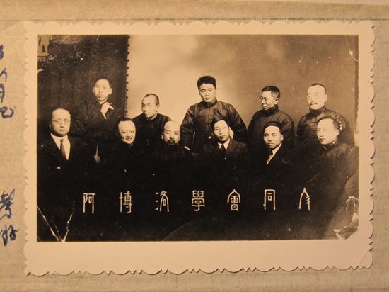 《阿博洛学会》成立于1921年,由当时的国立北京美术学校(原为中专性质,刘开渠同志就是从小学毕业后考入中专的,1919年创高级师范科后才成为大专性质),主要教授李毅士(留英)、吴法鼎(留法)两人领衔组织,主要是反对美校校长郑锦(留日学日本画,字耿裳,广东新会人)的保守腐败,从事新的美术活动(运动),从一开始就吸收刚因学生闹风潮而被美校开除的第一届高级师范科学生王子云任该会干事。此后会员逐渐扩充,并于1921年冬举行该会第一届美术展览会,1922年暑假借师大教室举办该会暑期美术讲习会,学员中多为各中学美术教师。1922年暑后不久即筹办了该会美术研究所训练学习,1922年冬才在一次会员集会中照了这张照片。照片左起前排:郭志云(外交部职员,业余画家)、李毅士、韩××(忘记,美校图案系主任,留日)、钱铸九(上海美专油画家)、夏伯鸣(美校西画教师,留日)、吴法鼎。照片左起后排:高叔述(美校西画教师,留日)、王悦之(美校油画教师,留日,河北保定人,后接阿博洛美术研究所自办北京美术研究所、北京艺术学校)、王子云(北京美校高师科肄业学生,任该会干事)、陈正民(中学老师,画家)、钱稻孙(文艺家)。阿博洛学会,实际是一美术研究组织,但未有会长或主席,主持人李毅士,而实际干事人只王子云一人。该会于1922年、1923年冬又举行第二届、第三届美术展览会,1923年暑假又举办了第二届暑期美术讲习会。以上的事实可在当年的《晨报》、《顺天时报》和《京报》上查到。阿博洛美术学会实际是当时,即二十年代初五四运动后的北平第一个也是唯一的新的美术运动的团体。1924年后因主持无人,即告停顿。