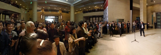 It is said that was the most direct, most self-confident, entirely new opening ceremony. Ahead of the door of National Art Museum, there were no baskets of flowers, no jumbo poster, no red carpet, but only two flying pieces of plain gauzes printed with part of calligraphy by the artist, and the Art Museum became abnormally solemn and a low-key aloofness & arrogance.