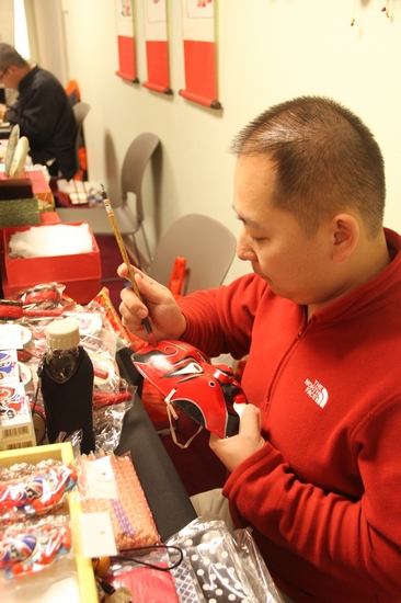 从现场来看,美国人对中国传统艺术的热情超出了我们的想象,一位父亲专门带着自己的两个女儿来到现场,请翻译给她们逐个介绍现场展示的民间工艺。著名泥塑彩绘艺术家佟秀芬看到两个孩子这么喜欢中国传统文化,特意赠送孩子们两个脸谱,并手把手地教孩子们如何画脸谱。佟老师教得非常认真,虽然语言不通,但艺术是想通的,孩子们学得很认真,不一会儿就画出了自己的作品。孩子的父亲在一旁很激动,连连向中国艺术家们翘大拇哥。在展示现场,看到美国人如此喜欢中国传统民间工艺,笔者深刻体会到,这样的民间工艺交流展示让美国人在自己的家门口零距离地认识了真正的中国传统民俗文化,感受到了中国民间艺术散发出来的神奇魅力,更让他们从极其微妙的工艺中感受到了中国文化的震撼力。