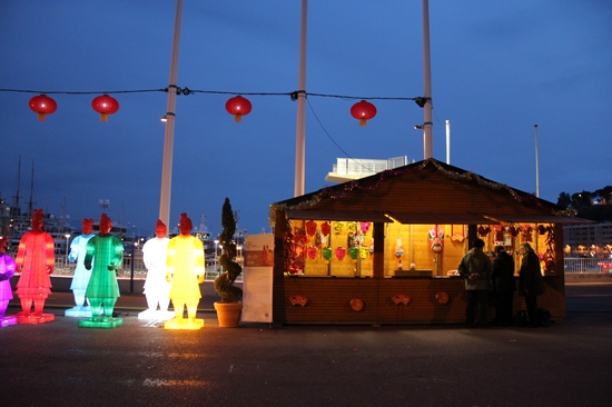 On the afternoons of Saturday and Sunday, Wang Yanmin, a Chinese artist of colored lanterns commuted among the 8 cabins because his business was so prosperous. With so many foreign customers, he had to exchange money with his peers from time to time. Outside the cabins were colored ribbons, character of “Fu” (Happiness in Chinese) and lanterns, which showed a distinct expression of China while inside the cabins were beautiful selected items of folk handicraft extremely popular among Monaco people.