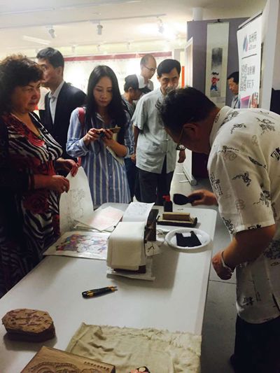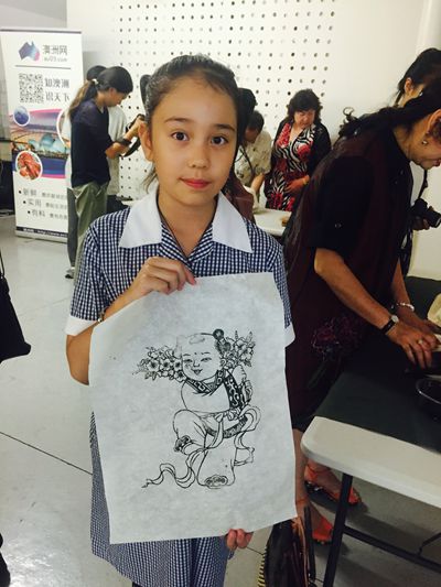 高山流水遇知音。在古筝现场演奏的悠扬乐声中,年画艺术家于福堂、马志强、胡光葵等除了演示印刷制作年画的全过程外,还过足了异域授徒的瘾。现场观众排起队来学习体验中国木版年画印制技艺,有的澳大利亚朋友觉得一次不尽兴,接着再排一次队。在中国年画师傅们耐心示范、手把手的指导下,来宾和观众完成了一次次中国传统文化艺术制作技艺的美妙体验,他们激动地捧着自己亲手印制的带有中国年画艺术家签名和印制的新鲜照片,高高兴兴回家。尽管本次展览只有短短的五天时间,但观者与艺人互动尽欢,其乐融融。