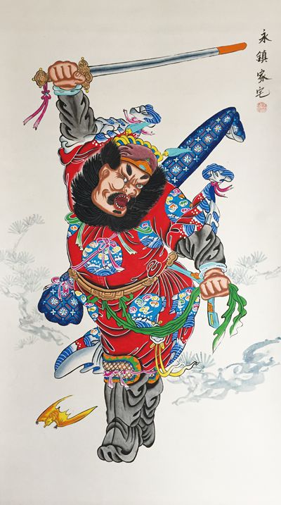 本次展览展出的近百幅作品,几乎囊括了中国年画多样化的制作形式:既有木版套印年画,又有半印半绘年画,也有手绘年画,还有独特的绣品年画。作为北方年画的重要产地之一山东潍坊杨家埠,带来了包括辟邪纳福、祥瑞吉利、民俗风情、小说戏文、风景花卉、美人童子等内容的明清时期年画代表作,如《神荼郁垒》《五子门神》《增福财神》《大灶王》《摇钱树》《空城计》《虎牢关三英战吕布》《百子献寿》《西厢记》《金玉满堂》《水浒一百单八将》《博古花卉图》等;还有新中国成立后创作的、表现新时期新生活的年画作品,如《欢乐新年》《新春大吉》《家畜兴旺》《姑嫂编织》《勤俭致富》《休闲度假》《放风筝》等,题材多样,门类齐全,几乎涉及了木版年画历史流变的全过程。四川绵竹木版年画,通过起稿、刻版、印墨、施彩、盖花等多道工序完成。在艺术构思上表达了四川人对生活特有的理解,而且实用性与趣味性并重,绘画性强。作为西南年画“三大产地”之一,这次四川绵竹年画馆给澳洲朋友带来了传统年画门神中不同的人物系列,如儿童、女性、文官、武将等,充溢着蜀地乡土气息。