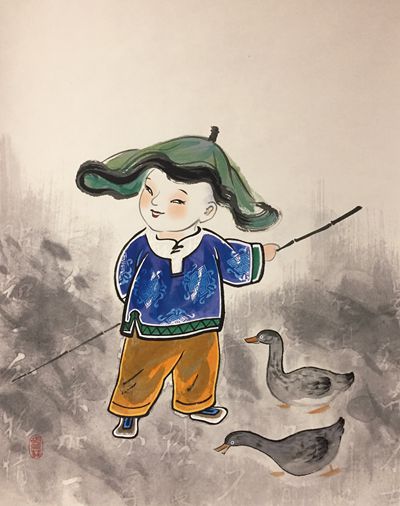 清咸丰十一年(1861年)八月,太平军黑旗队北伐入境山东潍坊杨家埠村,迁延至九月拔营西去。其间有一位太平军的遗孤被北公义画店店主杨九省(1828年生)收养。此童无名无姓,便被呼为“长毛童子”。“长毛童子”聪明好学,开始在北公义画店画货,很快成了手绘年画的高手,继而又学朽稿画样。后来他创作了《水浒一百单八将》,所绘豪杰,个个英武,性格鲜明,栩栩如生。第一次刻版印刷后,全部运去胶州,不日抢购一空。杨九省见“长毛童子”长大成人,又是自己的得力助手,便为他娶妻成家,同时分给他足够的房屋、田产、农具和一头驴。有一年,杨家埠村续修《杨氏家谱》,未能将“长毛童子”写进,他深有感触。一日,他牵驴去寒亭赶集,把驴卖掉携款不辞而去,从此便无下落。