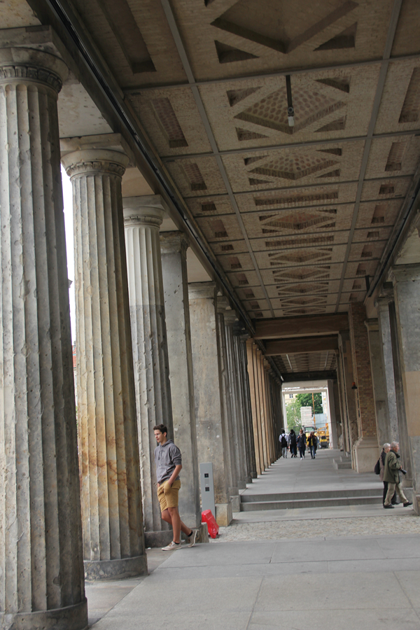 The venue of our event that we attended was close to Spree river, and standing on a bridge over the river, we could easily find a giant building in Baroque style as its lofty and round dome was quite outstanding. Taking a closer look, we could recognize it as the Bode Museum with major collections of sculptures and coins of religious themes. Such a museum was already an acme building in our mind, but just behind it there stood another four larger museums, all of which constituted a magnificent complex of museums, i.e., the Museum Island. Starting from the Bode Museum, the Spree river divides in two tributaries branches and in the middle stands the Museum Island. Before the mid-17th century, it had been a royal vegetable garden of the Kingdom of Prussia. Between 1825 and 1830, the Altes Museum (Old Museum) was designed and constructed, and then became the first museum on this island as well as one of the earliest independent museum in Germany. The front of the Altes Museum consists of magnificent colonnade of ancient Greek style in a magnificent manner, facing the old royal palace in Berlin in the past. Sculptures, ancient Greek pottery and mosaics are quite typical here.