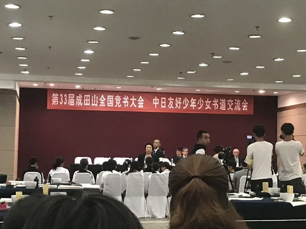 There was a fierce competition between every participant, and there was a warm moment when the rival kids helped one another with paper and ink preparation. Both took place in the China-Japan Friendship Teenager Calligraphy Exchange of the 33rd Japanese Naritasan National Calligraphy Competition (JNNCC). At the invitation of China Calligraphers Association (CCA),a 46-member Japan-China Friendship Teenager Calligraphy Exchange delegation, headed by Kishida Teruyasu, vice president of JNNCC and CEO of Shinshoji Temple, visited China for exchanges from August 4 till 7. On August 5, China-Japan Teenager Calligraphy Exchange was held in Beijing.