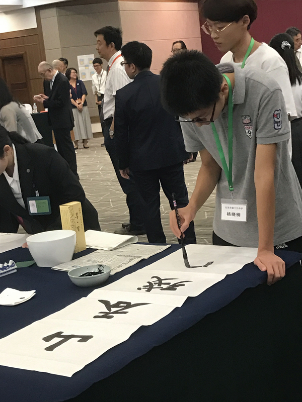 Oota Chihiro, a student of grade three of high school who has won "Lanting New Star Award" by CCA, was one of the 14 delegates from Japan. As for others, they are all winners of nationwide calligraphy competitions in Japan in 2017 and thus proven as blessed with outstanding talents in calligraphy. As for Chinese side, the 14 attendees were all students of elementary and secondary schools from Chaoyang, Haidian and Dongcheng Districts of Beijing. Though the youngest was only at the age of eleven, they were invariably qualified with a solid foundation of calligraphy.