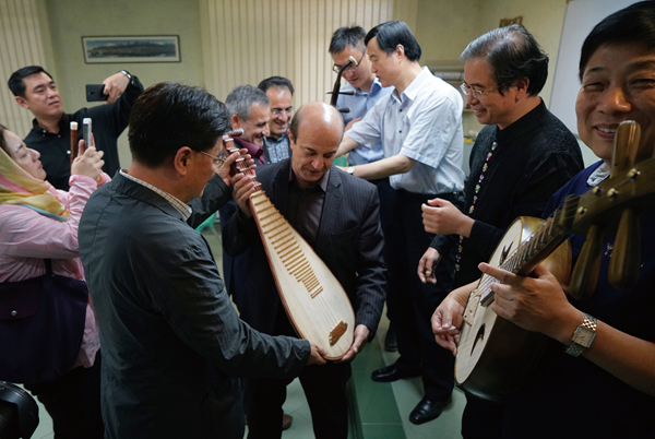 The "Silk Road" series successfully demonstrated the charm of Chinese national music as well as excellent traditional cultural connotation to the mainstream society, cultural celebrities and foreign envoys in Hungary, Iran and Egypt. Besides highly-remarked performances, they gained a fruitful achievement in music exchange as well. During the visit in Hungary, CMA and KWNLLC signed MOU at Korosi Csoma Sandor Cultural Center. In Iran, some Chinese musicians paid a visit to Esfahan University where they gave a on-the-spot illustration of various national musical instruments with classic masterpieces. In a bosom and friendly atmosphere of exchange, both sides expressed the willingness to further exchange and cooperation so as to enhance the musical development of the two countries. During their stay in Egypt, vice minister of Egyptian Culture met with Chinese delegation to conduct an in-depth discussion concerning China-Egypt art exchange and cooperation in music. With a retrospect in the exchange and reference history in music betheen two civilizations along the ancient Silk Road and after a brief introduction of the national musical instruments and current development, both parties looked forward to establishing platforms of creation, performance and exchange so as to ensure common development in the future.
