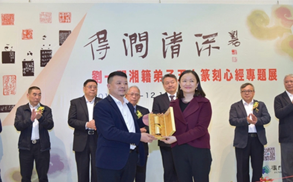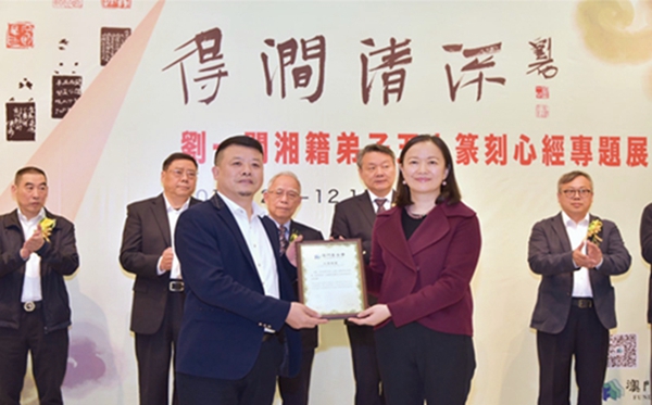 Stream of Ravine, thematic exhibition of seal engravings of The Hart of Prajna Paramita Sutra by LIU Yiwen’s five apprentices from Hunan, hosted by Macao Foundation, has been held at the exhibition hall and multi-function hall of Macao Foundation on 7-11, December. The event, with purpose of promoting the development of Chinese traditional culture and art and enlivening local cultural atmosphere, is committed to allowing more people in Macao to acknowledge and experience the charm of Chinese seal engraving artworks.