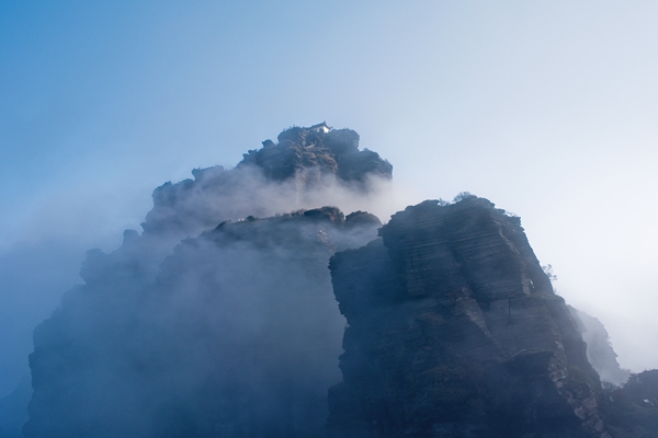 As a famous mountain in Guizhou, the Mount Fanjing is not only a national nature reserve, but also one of the five famous Buddhist mountains in China. The profound Buddhist cultural heritage of the renowned Maitreya Bodhisattva rite is self-evident. The famous poet WANG Xinjian has a poem "Climbing Mount Fanjing": "Mortal thoughts fade in approaching the mountain, merely holding the tranquility. The pure land pushes me up to the mountain sky, witnessing Zen fog and light from Buddha. All people come for holy connection. " which echoes the fact that Mount Fanjing is a paradise on earth for thorough leisure. JIN Gang said: "For the Mount Fanjing, helping it winning the laurel of 'Pure Land' and being considered a resting place for hearts." He introduced that the red cloud golden top is the core of the holy mountain, and the two ancient temples on the golden top are most worshipped. Built at summit of the mountain, people always refer them to as the "Temple in the air". The light from Buddha is one of the most peculiar celestial wonders of the Mount Fanjing. When the sun rises or sets, people can often witness the huge aura of seven brilliant colors. Inside sits the solemn Buddha, forming extremely strange scenery.