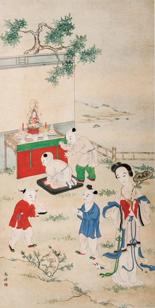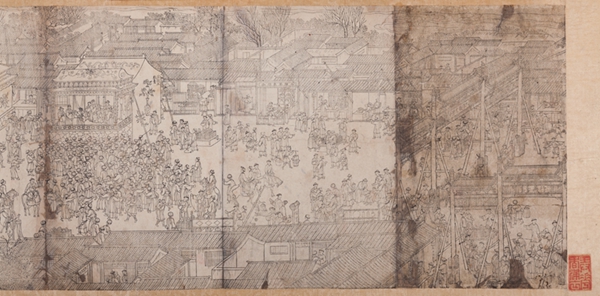 The two long scrolls of the Kangxi 60-year-old Longevity Printand the Kidai shoran (Depicting the Prosperity of the Nihonbashi distict) from Japan side-by-side have opened the curtain of "urban life"; the blue-nose cloud-grained cranes, the summer working costume of first degree civilian officials of the Qing Dynasty and the quilts with linen-like waterside scenery design clothing of the Edo urban women echoed each other; the Modern Occupational Encyclopedia (Ukiyo-e Edition) depicted a tobacco-bag store, a tobacco shop, and a monkey-training entertainer and others who passed by the front of the store, these images can be compared with the corresponding images in the Old Beijing 360-Job Catalogue. The exhibition spans the Double Seventh Festival and the Mid-Autumn Festival. Therefore, the exhibition focused on comparing the customs of the two countries on the Double Seventh and Mid-Autumn Festival in the festival section. On the two sides of a bright moon, it lays the pictures of admiring moon of China and Japan. In this way, the audiences can more intuitively and deeply compare the characteristics and styles, commonalities and features of the same historical node and the two cities in the same scene, thus deepening the perception of their own and the external world.