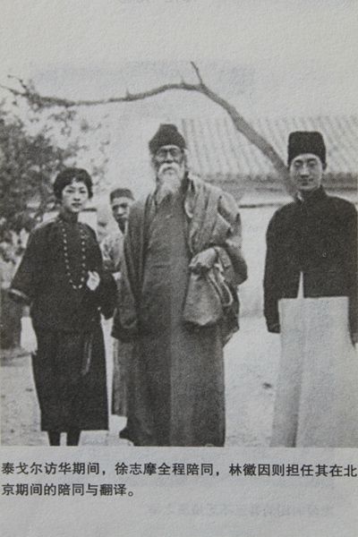 泰戈尔访华期间,与林徽因、徐志摩合影